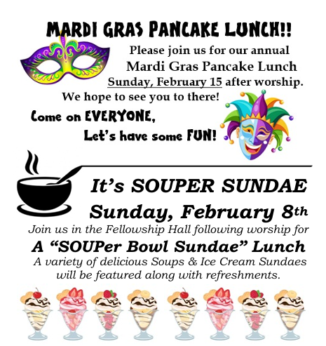 “MARDI GRAS Pancake Lunch” following worship